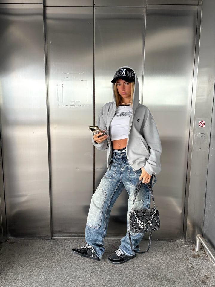 Skyscraper Grey Waffle Zip Up X Hoodie